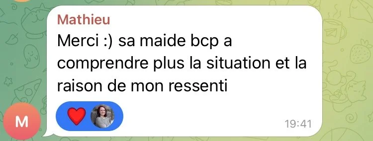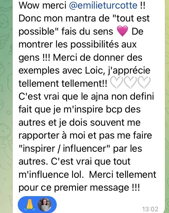 Jaime bcp la communauté et les échanges entre nous. Toujours plein de sujet intéressant qui nous amène à aller plus loin dans notre développement. On partage pui sur la théorie mais aussi comment on vit les choses selon ce qui est activé en nous ou pas .💖